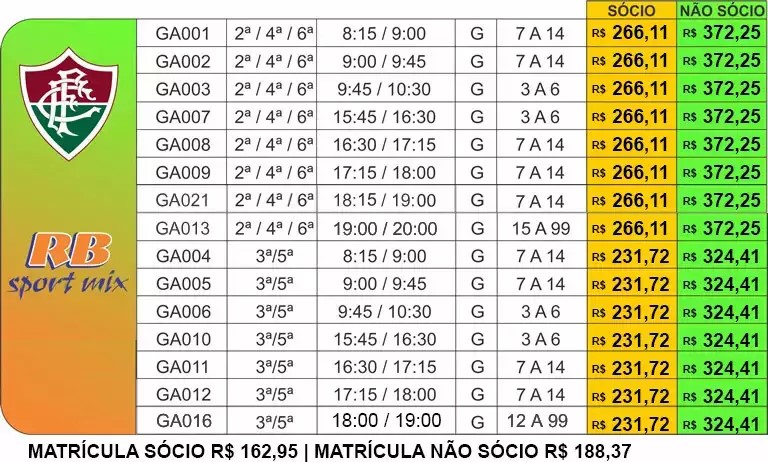 - Escolinha – primeiros contatos com a modalidade, vivências lúdicas e desenvolvimento motor.